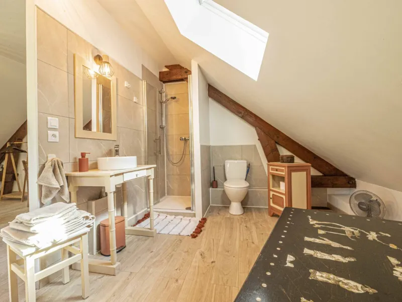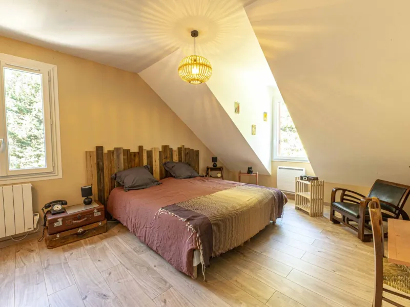 Amoureux des brocantes, de la décoration et des livres, les propriétaires ont aménagé deux chambres d’hôtes, chaleureuses et conviviales, avec un espace commun de lecture et de vidéo avec télé connectée et lecteur DVD.Chambre familiale « Au chat styliste » 36 m² composée d'un lit de 180 cm (ou en deux lits simples de 90 cm), un lit enfant de 90cm et un lit bébé. Accès à une salle d’eau privative, indépendante avec WC.