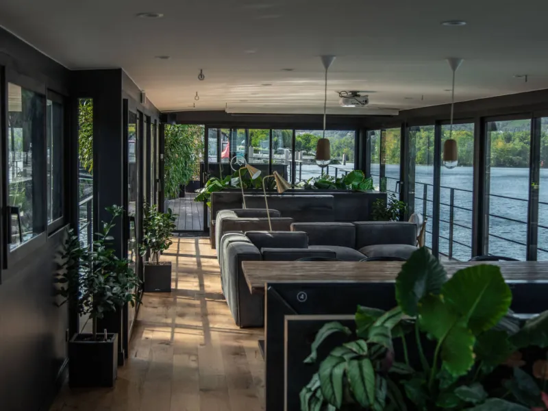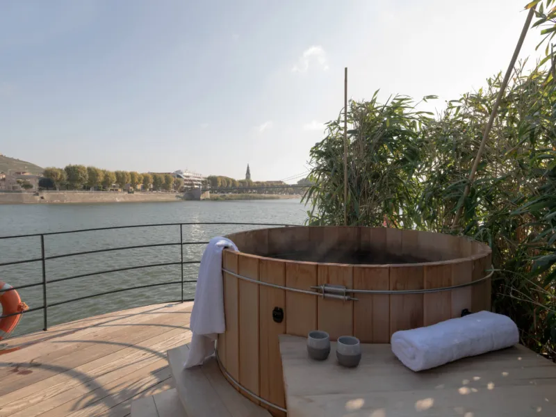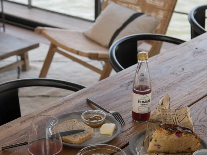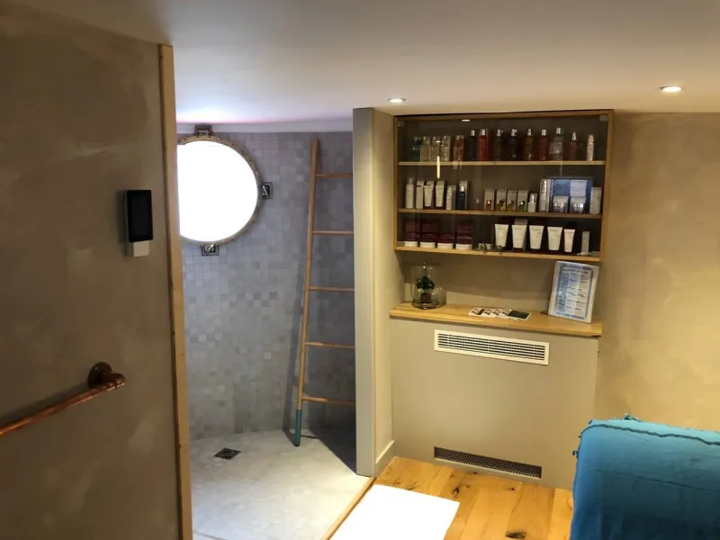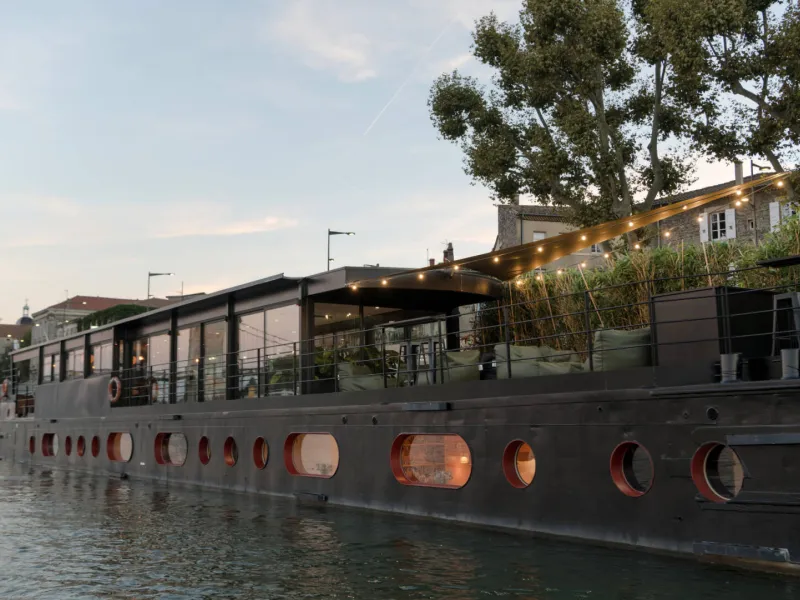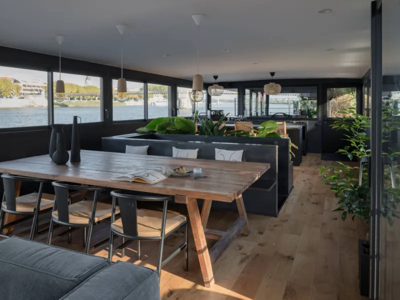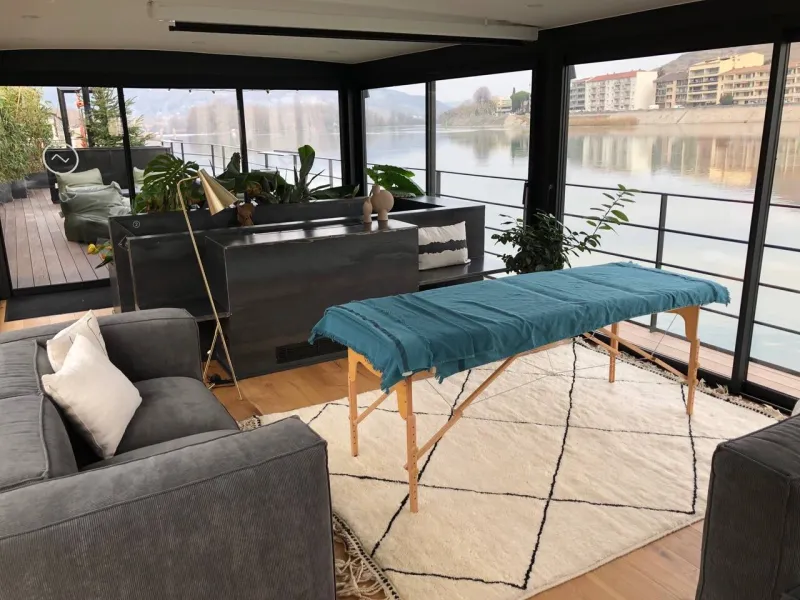 En toute discrétion les hôtes pourront jouir sur le pont terrasse d'un bain nordique en encore d'un spa ( + sauna et table de massage sur réservation ) en "sous sol". Jardin d'hiver, cuisine équipée invitent à profiter de l'instant présent en compagnie des autres hôtes. Les cyclistes pourront laisser leurs vélos dans un container sécurisé ( QR code et caméra de surveillance ) sur le quai. C'est une péniche "connectée" avec QR codes d'accès aux chambres et aux espaces communs, connexion wifi haut débit + systèmes Air Play.