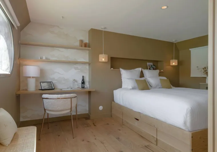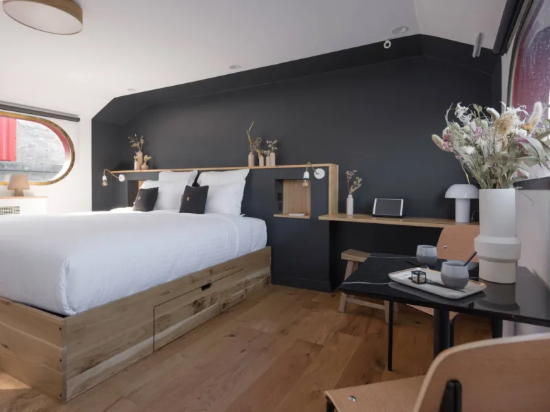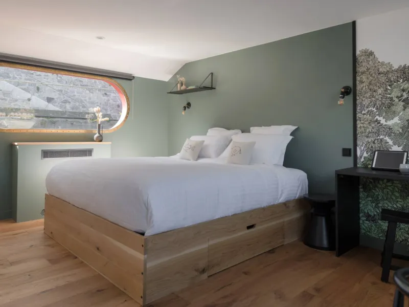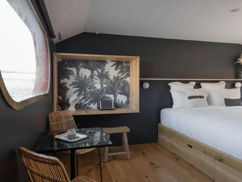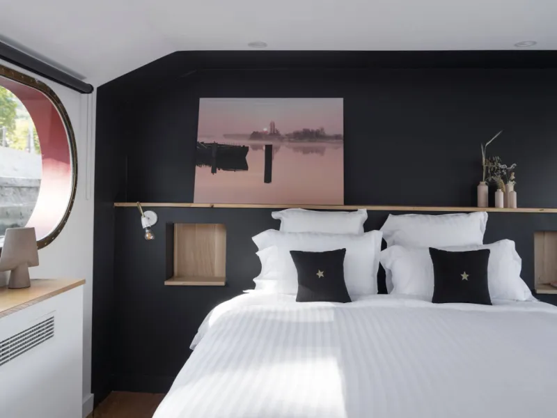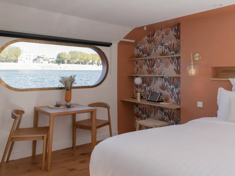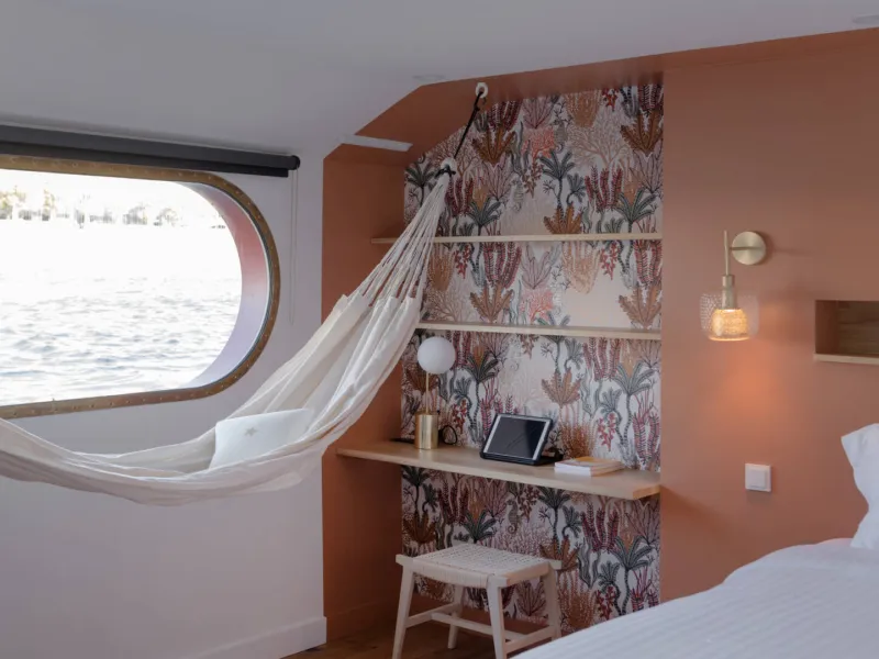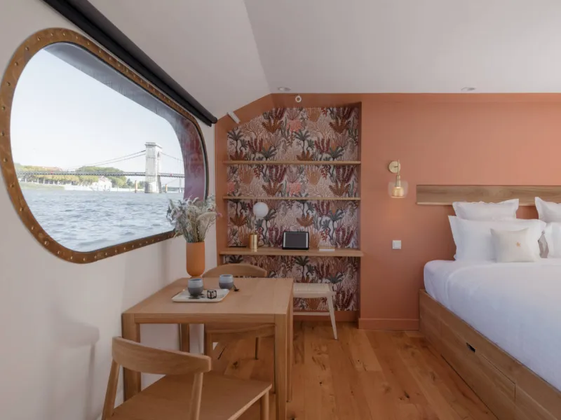 Elles occupent l'ancienne cale et se situent légèrement au dessous du niveau du fleuve. Les larges hublots de chaque côté du lit participent à la sensation de flottement et de calme qui gagnent les corps et les esprits.