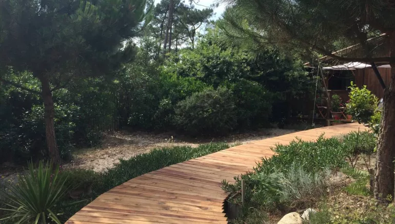 In Montalivet, the ZEN OCEAN chambre d'hôtes classified as a Chambre d'hôtes Référence is an air-conditioned wooden cabin on the edge of the national forest (behind our wooden house), 300 m from the beach and 500 m from the market/restaurants.