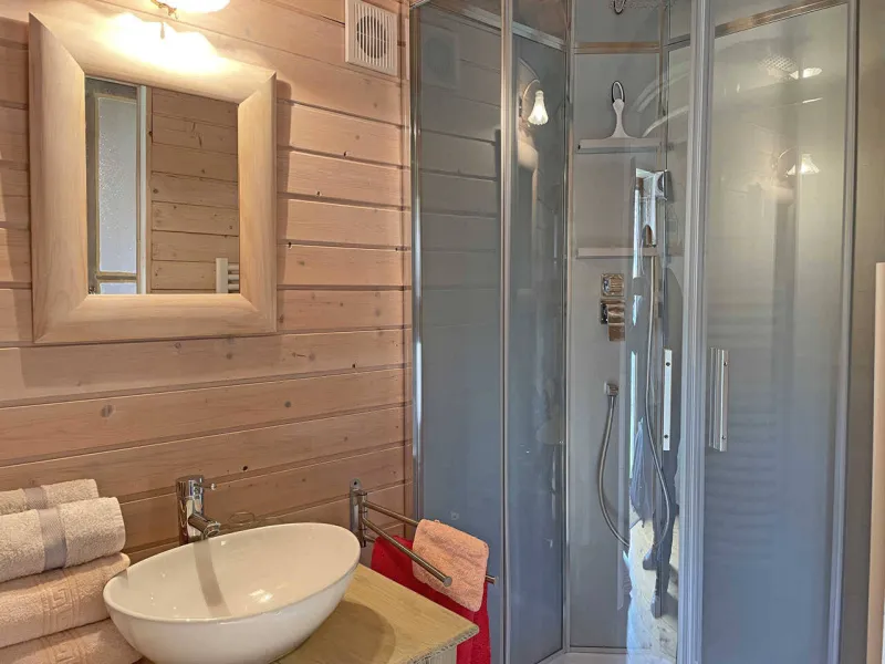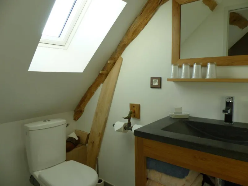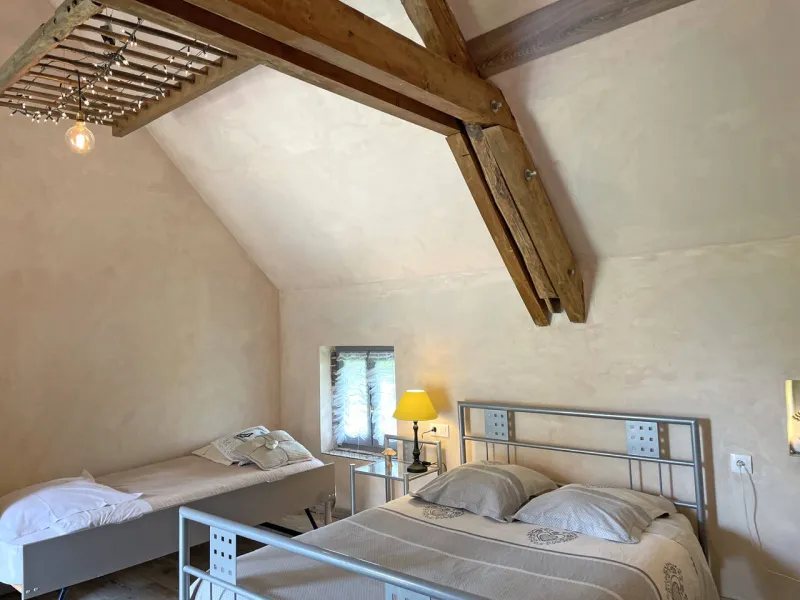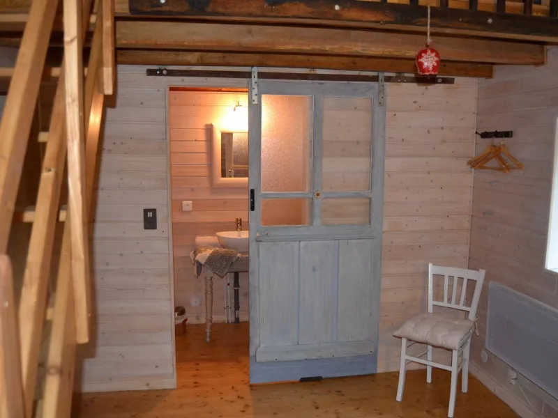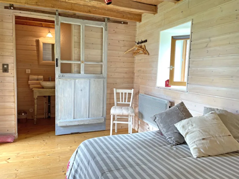 In a small building facing our dwelling house, we offer a family suite located on the ground floor elevated for up to 3 people (2 beds of 140) decoration style chalet and furnished by reviving the old materials (door, vanity unit of the bathroom).