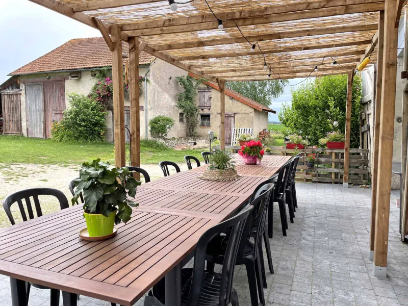 Breakfasts and dinners will be served in the large living room of the barn or on the terrace in good weather.
