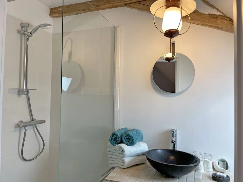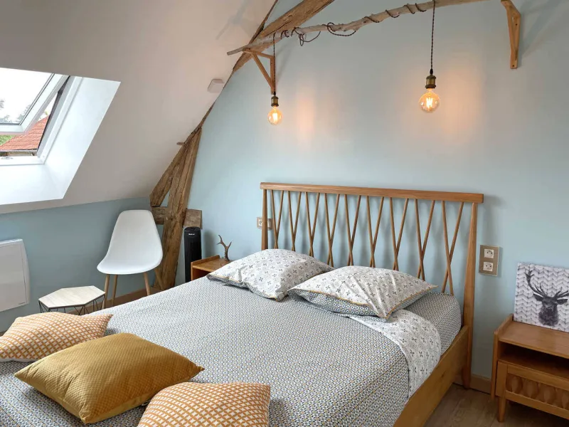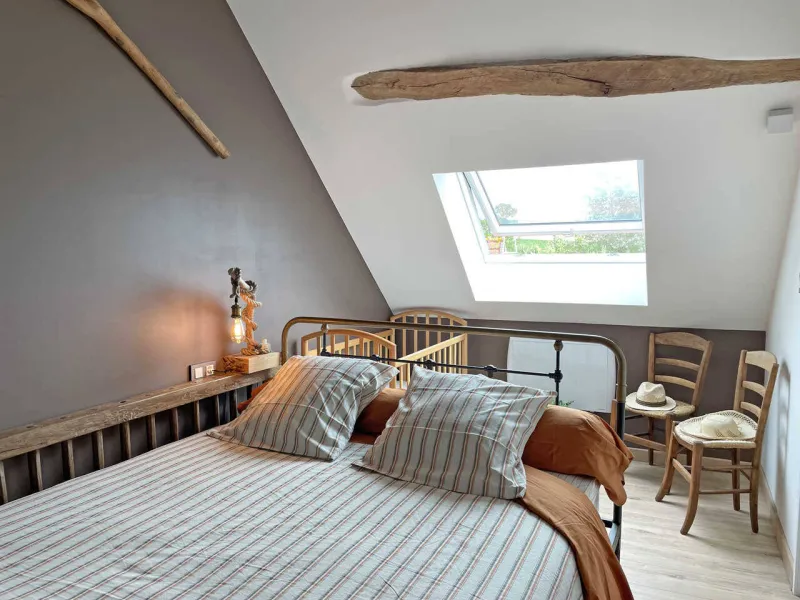 On the first floor of the barn completely renovated, we offer 3 guest rooms with refined and original decoration. The room Iceland for 2 people (1 bed 140), the family room Ocean for 3 people (1 bed 140 and a bed 90) and the room Countryside for 3/4 people, (1 bed 160 and 2 beds 90 in alcoves).