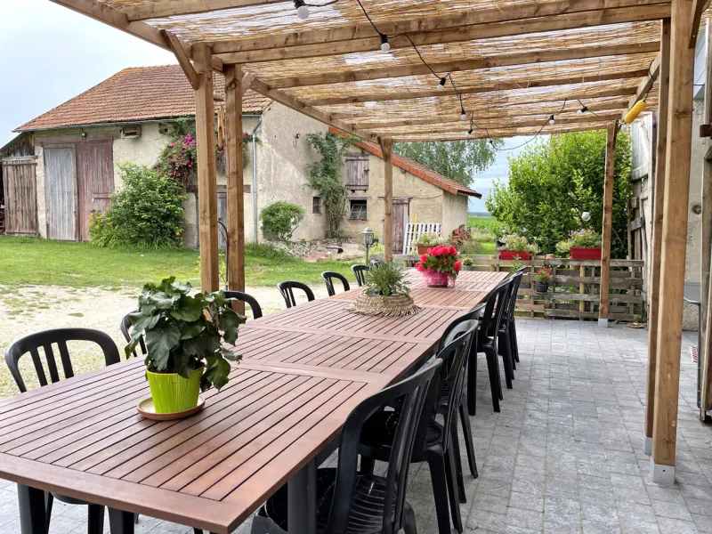 Quiet and away from the main road, you will enjoy the view of the 15th century castle perched above the valley of the Besbre. You can stroll in our garden with lawn, fruit trees, flower beds and relax in the various relaxation areas including a terrace with sunbathing next to the pool (above ground) and table tennis.A games room is available in an annex room. You can enjoy table football, darts and other board games.