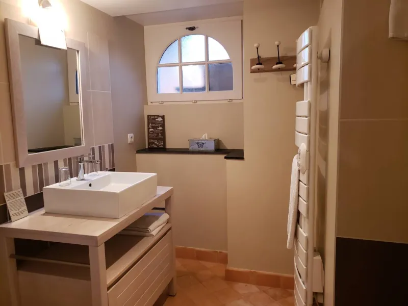 Chambre René d'Anjou: upstairs, 1 bed 160 x 200, walk-in shower room, separate WC, internet connection. Possibility of an additional 140 x 190 bed.