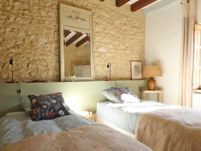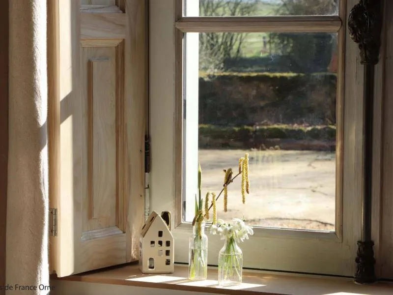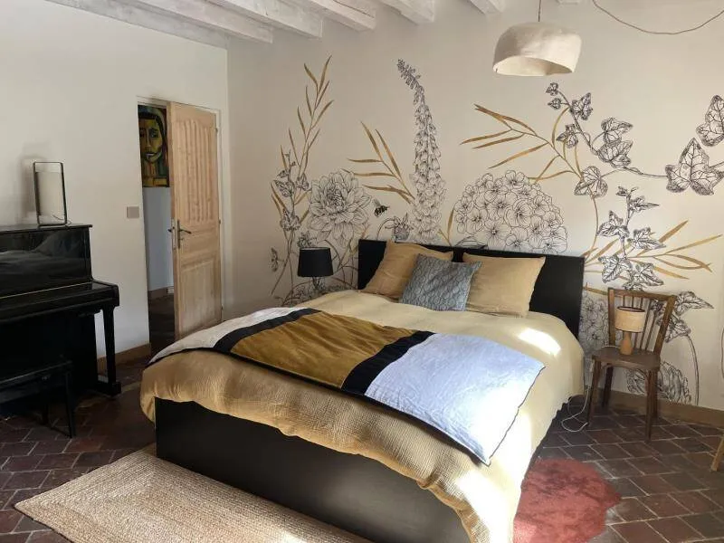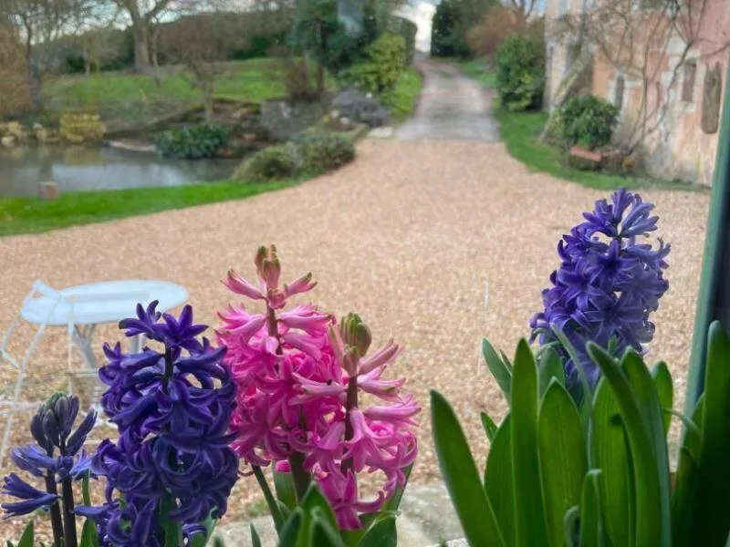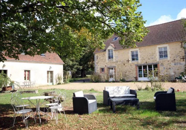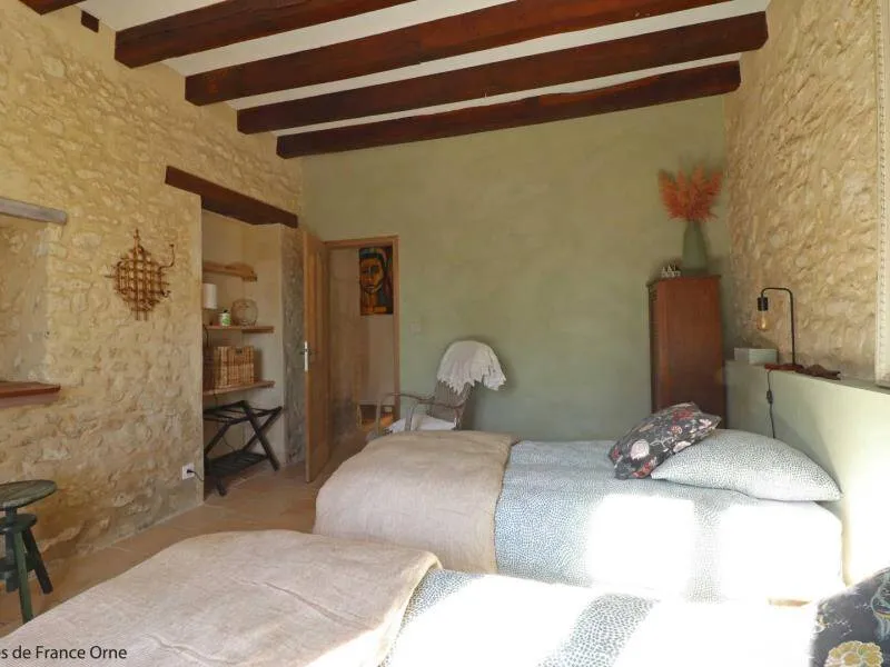 The Moulin de Radray is a place conducive to reconnecting with nature on 1 hectare and a half of garden, just 1 km from the Small City of Character of Mortagne au Perche. Crossed by the river "La Chippe", the reach feeds the mill in the restoration project by Christine who is part of the Association des Amis des Moulins 61. She offers guided tours of the estate. His ambition is to restart the mill, stopped around 1950, to make it a milling museum. She also organizes courses around well-being, spirituality and the relationship with nature. An activity room is available on site.- Suite of 2 bedrooms on the ground floor with independent access: Bedroom with double bed 160 x 200 cm, piano, direct access to the garden. Bedroom with 2 single beds 90 x 190 cm. Shower room reserved for the suite with walk-in shower. Separate and non-adjoining toilets. - Upstairs dormitory with 4 single beds and adjoining shower room/wc (reserved primarily for hikers). Garden crossed by the river with open pond. Possibility of recharging an electric vehicle. Gourmet plate on reservation composed of local and organic products at 15€ per person.