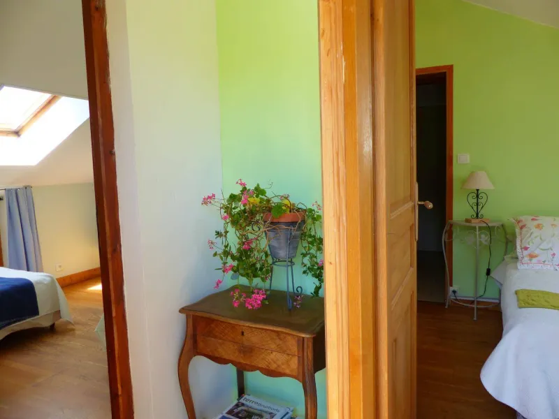 2 rooms have been fitted out in former horse boxes, Italian shower room adapted to disabled people and independent toilet, small living room with private wood stove. On the first floor of their house, 1 family guest room, bathroom (shower/private toilet). Common living room, library, courtyard with lawn, garden, marked hiking trails from the farm. GR3 1 km. Table d'hôtes on reservation (19 €) 10% discount from 3 nights. Bourbon-Lancy 14 km. Access to the owner's swimming pool according to schedule. Rural gite on the spot. Animal park le Pal 12 km. Indoor swimming pool at 3 km. Green way in the vicinityLocalisation