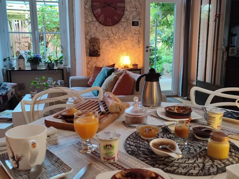 Get your day off to a good start with a home-cooked breakfast. Served on the ground floor in the living room, it features fresh, organic and local produce. Make yourself comfortable and enjoy a gourmet moment in a warm, peaceful atmosphere... just like at home!