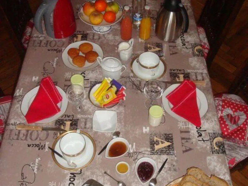 Breakfast includes homemade bread, brioche and jam, plus fresh fruit and fruit juice.