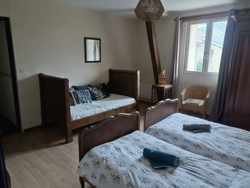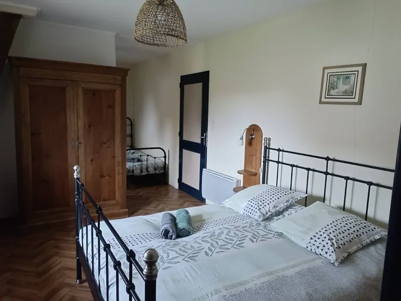Chambre la Besbre : 1 lit double et 1 lit simple. Salle de bain privée avec douche.Chambre la Rosière : 1 lit double et 2 lits simples. Salle de bain privée avec douche.