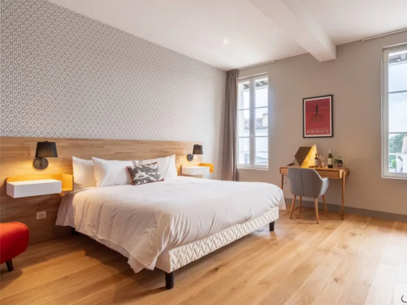 Located at the Château de Seguin, our guest rooms can accommodate a total of 14 people.Totally renovated in 2019, they offer the greatest comfort, in a style combining contemporary design, wood and exposed stone.