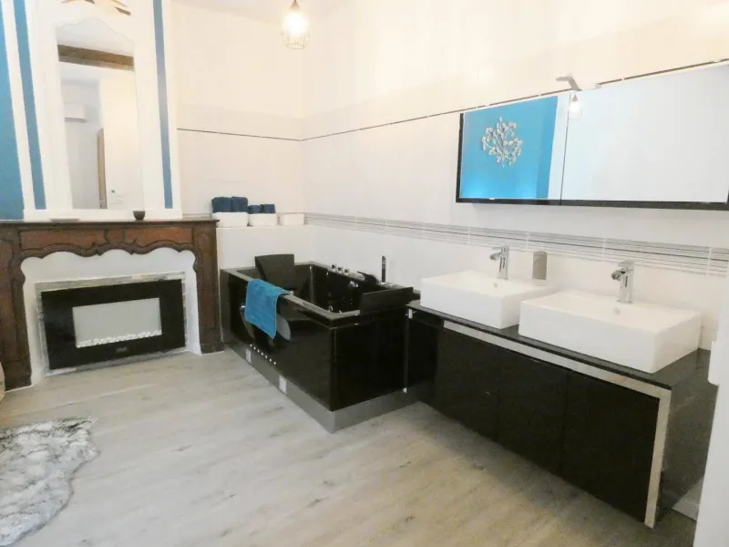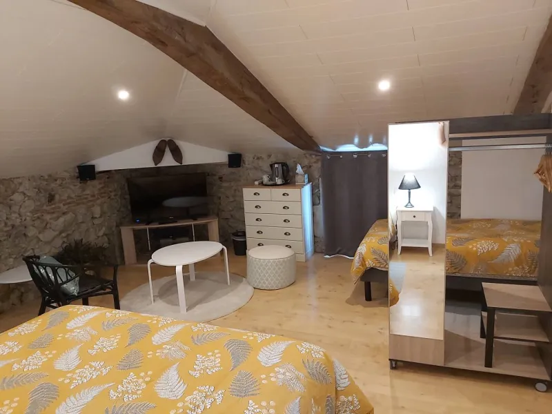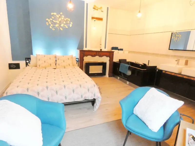 Hotel-quality bedding in 180 or 160 cm, with separate toilet. Open bathroom with whirlpool bath (La Flabuta), or separate shower with Hamam/Sauna (La Cigogne), shower (La barthaise). 2 family rooms: for 3 (La landaise) with hydromassage bath and shower, fully equipped kitchen, for 4 (La champêtre) with shower. At your disposal: parking space, bicycle garage, summer kitchen with pergola, electric recharging, baby equipment on request.