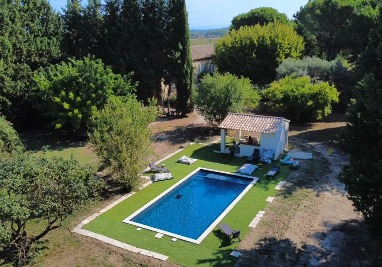 It's located in a quiet residential area in the village of Roquemaure, 16km from Avignon, ideally situated between the Vaucluse and Gard regions to discover the tourist highlights of the South of France.