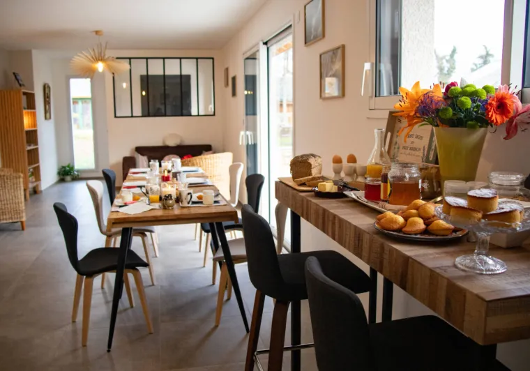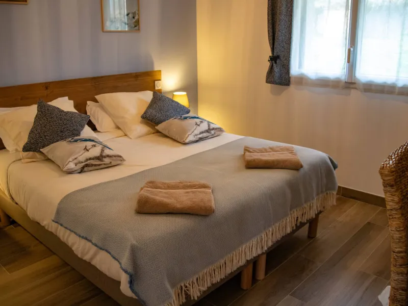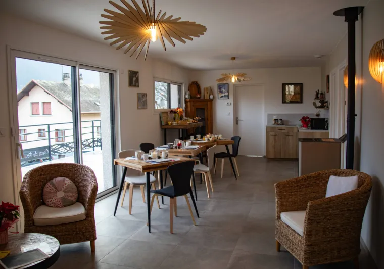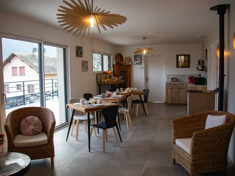 The Coeur de Fournache guest rooms in Saint-Jean-de-Maurienne are designed for maximum comfort. They offer a comfortable space, with excellent sound and heat insulation. Underfloor heating can be used for cooling in the summer, even in the hottest weather. Each room has a private en-suite bathroom with shower, washbasin and WC.An airlock, with double doors, isolates the rooms from the common room, where the breakfast area, kitchenette and sitting area are located.