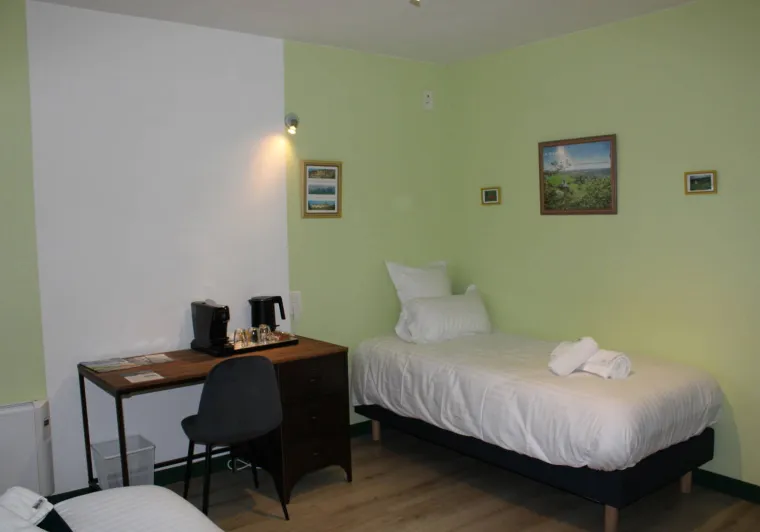 The guest room "La Mer" is located on the first floor. It is suitable for 4 people maximum (1 bed 140 and 2 beds 90). A shower room with WC is adjacent. There is no TV. Pets are not accepted.