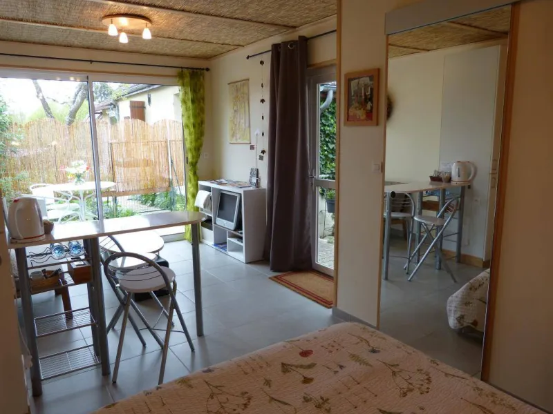 63 km from Paris and 5 km from Fontainebleau. Two charming guest rooms: "L'Embellie" and "Le Nid". Possibility to park in the street, - L'Embellie, on one level, is located in a small independent house in our garden and opening onto a private terrace with garden furniture. private door to exit to the streetThe bed and breakfast "Le Nid" is located upstairs with access by an outside staircase. Small terrace. The two guest rooms have a relaxation area with sofa, TV, kettle, tea and coffee as well as small seasonal house specialties (jams, pastries). Wifi on request, free. Sleeping area with a double bed (140). Shower room/WC (hair-dryer).
