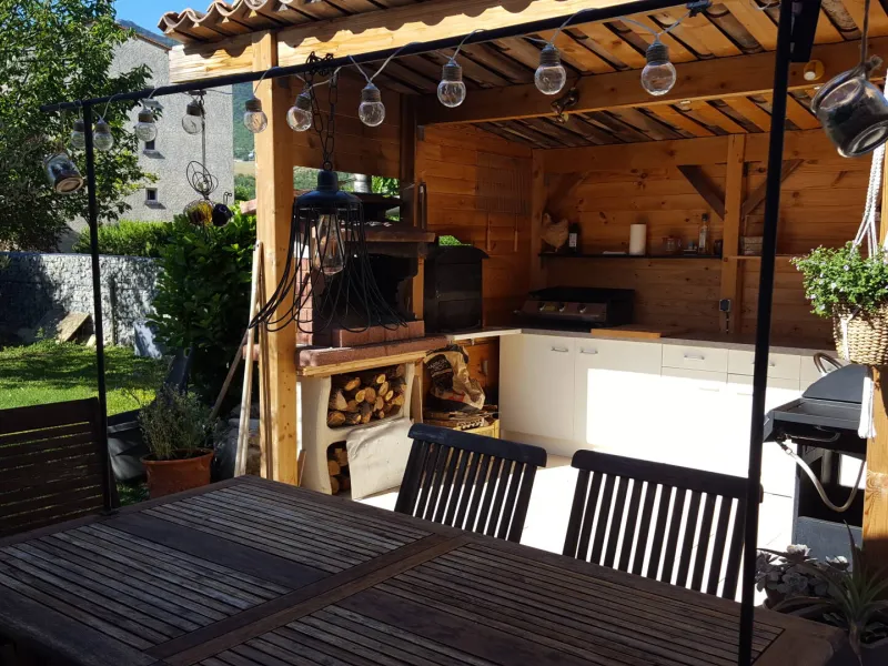 On the garden side, you can fully enjoy the secure and heated swimming pool as well as the summer kitchen equipped with a barbecue, a plancha and a fridge.