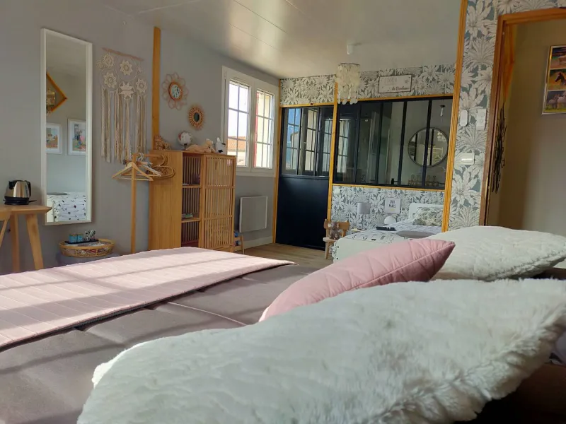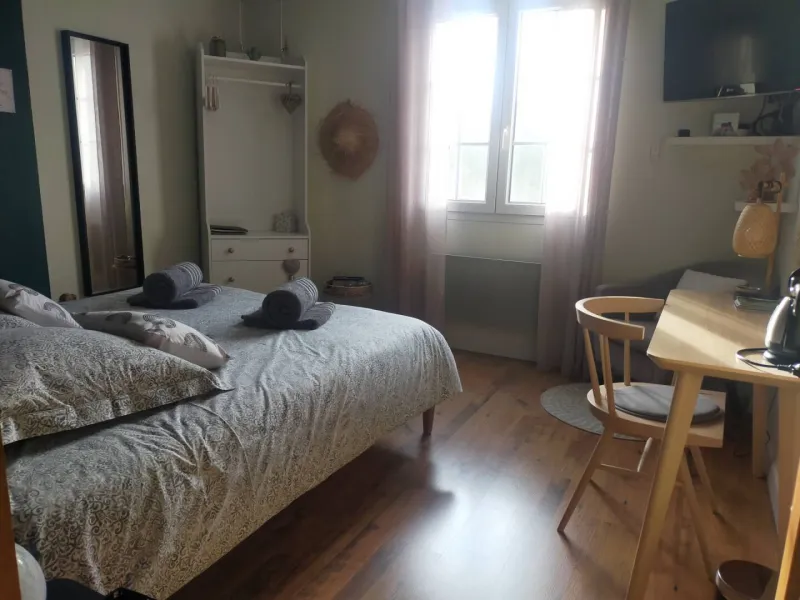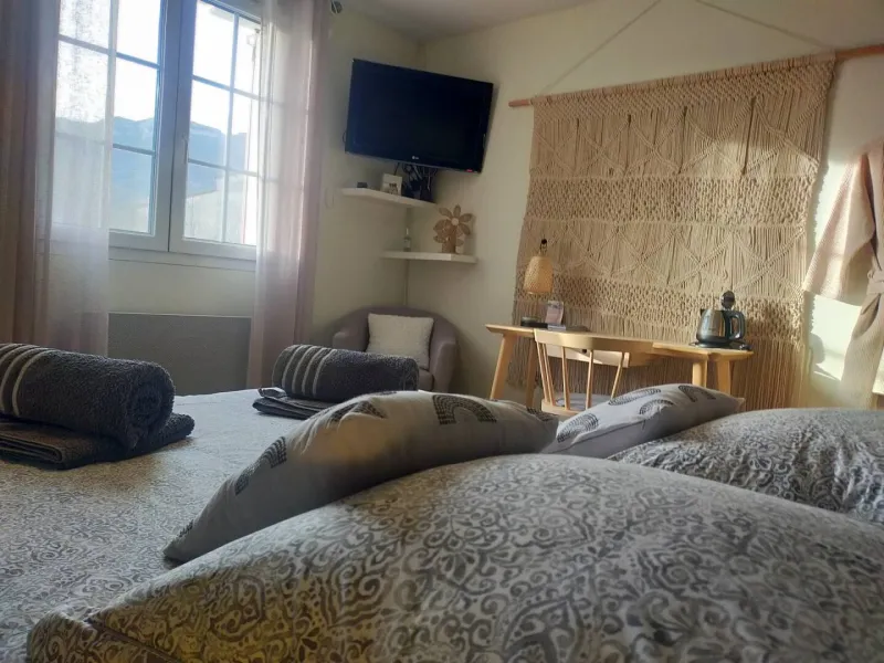 We have 2 rooms, upstairs, overlooking the garden. We can accommodate 4 adults and 2 children (One room is equipped for children). A cot is available upon request.
