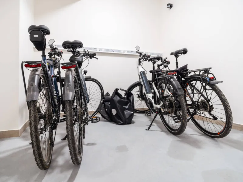 Just 100 meters away, a parking lot awaits you, but feel free to drop off your luggage in the drop-off area. Explore local flavors in the three restaurants within walking distance, discover our walking, visiting, and cycling routes. A bicycle storage room and basic repair equipment are available for cyclists. Petanque balls are also at your disposal.