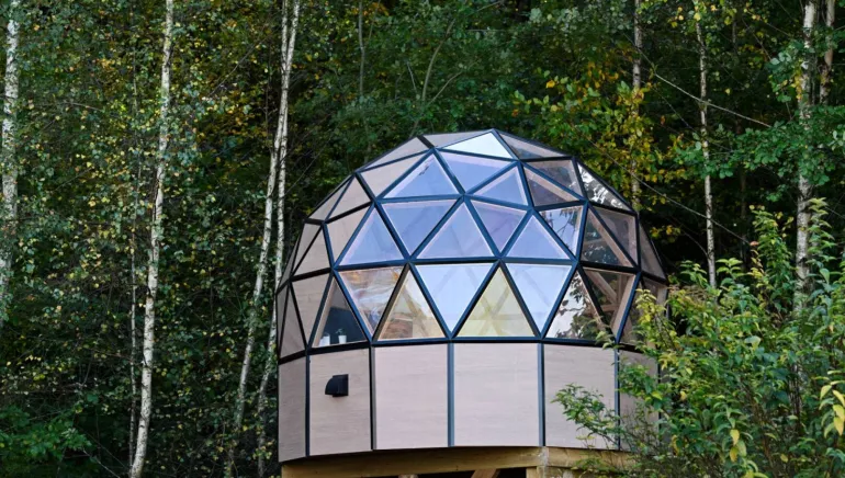 Succumb to the charm of the large Olia dome, an unusual and spacious accommodation designed for 2 to 4 people. A true bubble of serenity on two levels, its transparency plunges you into the heart of nature for a magical experience, between sky and greenery. Relax in your private Nordic bath, enjoy an exclusive terrace and let the surrounding calm lull you into an unforgettable stay.