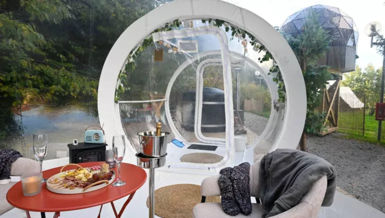 Enjoy a unique experience in the Oriana dome, an unusual cocoon designed for two people. Its transparency plunges you into the heart of nature, inviting you to spend a magical night in comfort and serenity. Make the most of your private Nordic bath and exclusive terrace for an unforgettable moment of relaxation.