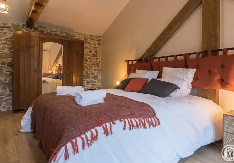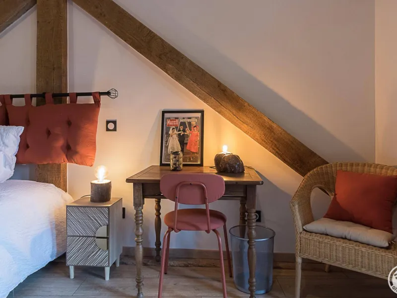 2nd floor with sloping ceilings: "Emilienne" family room, comprising 2 rooms sharing the same bathroom.