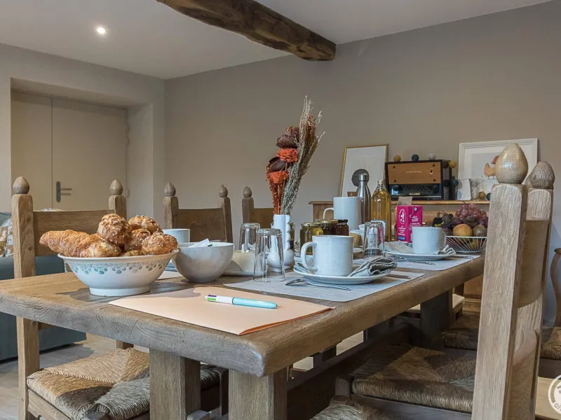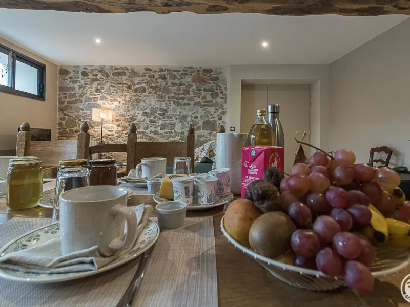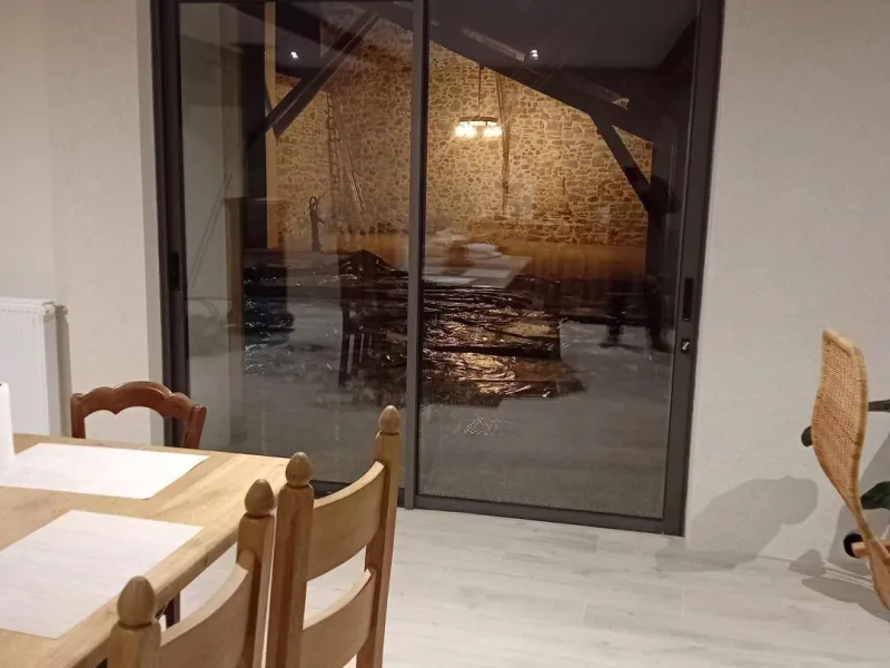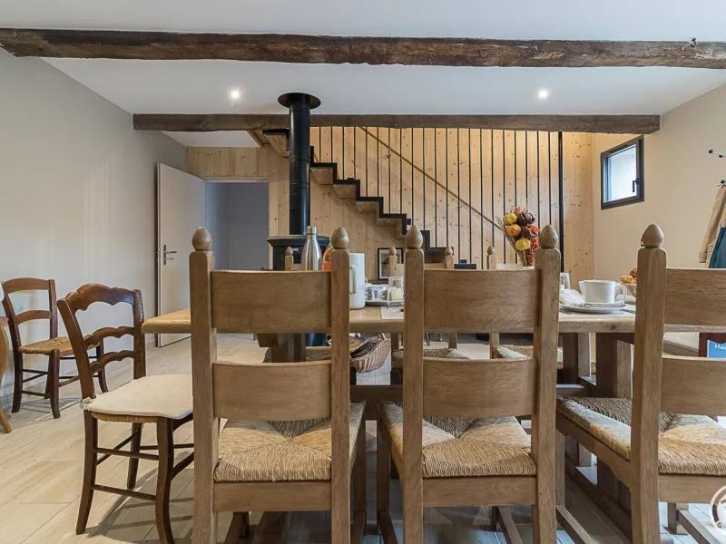 Ground floor: reception area, guest lounge (wood-burning stove, dining area and sitting area), Chambre "Marie", accessible to people with reduced mobility.