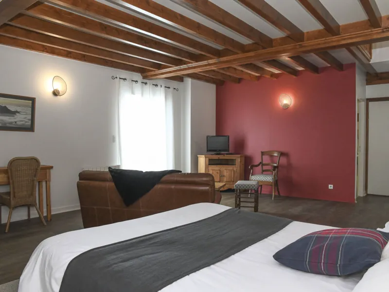 It is in a sweet atmosphere that you enjoy the 5 rooms including a suite. The rooms are equipped with a full bathroom, TV, free wifi. A living room is also available with a kitchen if you want to be independent during your stay.For your well being, an indoor heated pool, from May to September. A playground for children, and a barbecue for summer evenings.