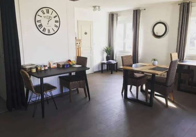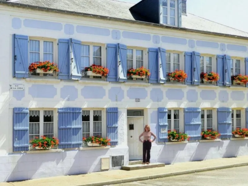 Large, fully renovated bourgeois house dating from the turn of the last century, in the heart of Le Crotoy, close to the beach and port. 3 guest rooms on the 1st and 2nd floors, each warmly and differently decorated. 1st floor: 1 chambre 3 épis (1 bed 140x190) with private shower room and toilet. 2nd floor: 1 chambre 3 épis (1 bed 140x190) with private shower room and WC. 1 attic bedroom 1 épi (1 bed 140x190) with adjoining bathroom and WC on the landing. Breakfast served in the dining room, veranda or flowered courtyard. Relaxing lounge with TV and library. Bike rental available. Parking lot nearby. Beach cabin available from May to September. Chambre d'hôtes with Accueil Vélo label and secure bike shelter, located 1.1km from the Vélomaritime on the Noyelles-sur-Mer - Quend section. Permanent exhibition of naive art by the hostess, an artist who has exhibited in France and abroad for many years. La Maison Bleue en Baie is not suitable for babies and children, as the configuration of the premises is not appropriate (problem with stairs). Electric vehicle charging station 250m away. Tourist tax added and collected on final payment.Localisation