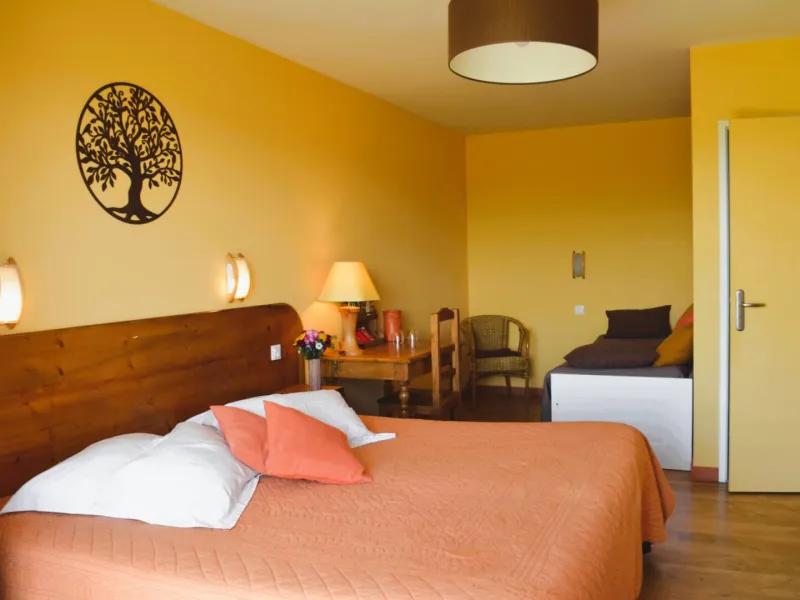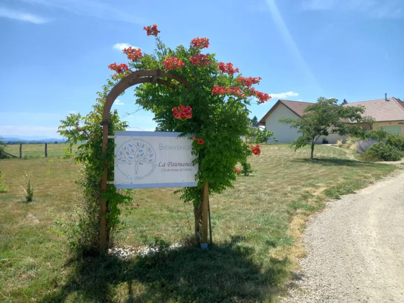 Between Lyon and Chambéry, Corinne and Rémi reserve you a warm welcome in their guest house La Paumanelle that combines modernity and traditional style. In this house with low environmental impact, you will be received in two spacious, bright guest rooms with patio doors opening onto fields and mountains, offering an exceptional view and a perfect ambient to relax.The gourmet table d'hôtes is available upon reservation and is made with local products, preferably organic.