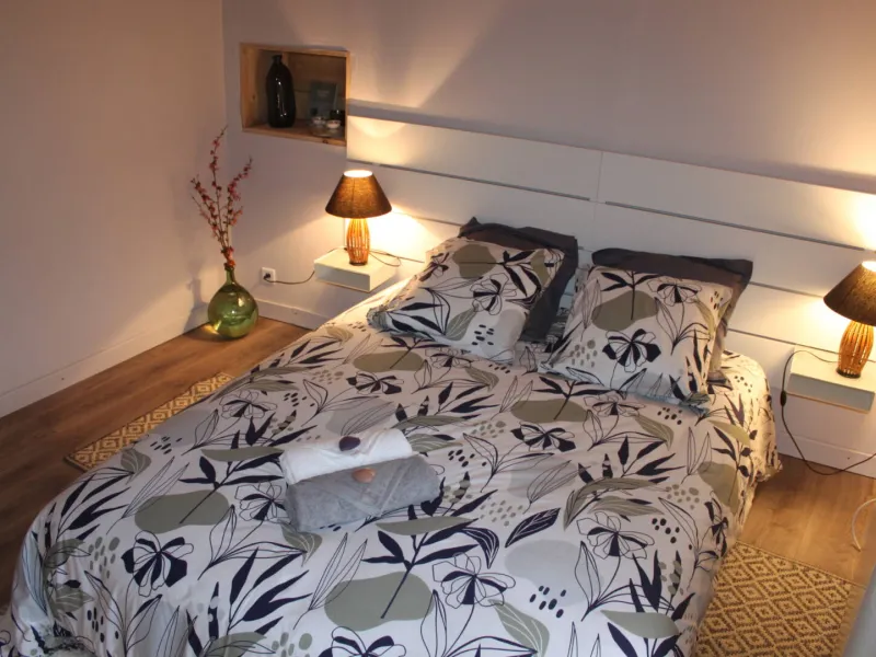 La chambre dans laquelle vous séjournerez se situe au cœur de la maison car nous avons voulu renouer avec le véritable esprit de la chambre d'hôtes tourné autour de l'échange, de la convivialité et l'amour des choses simples. Nous disposons du même escalier, mais votre espace est totalement indépendant avec vos wc, votre salle d'eau, votre chambre et un petit salon.