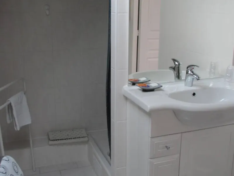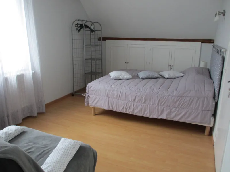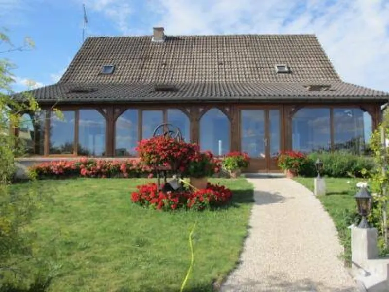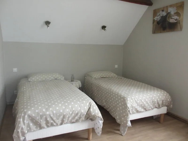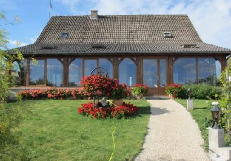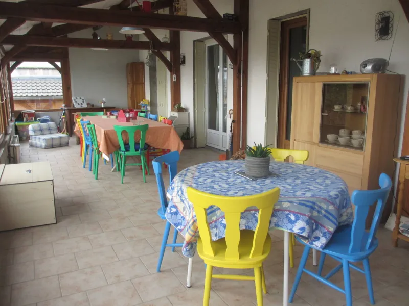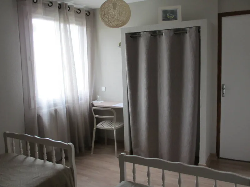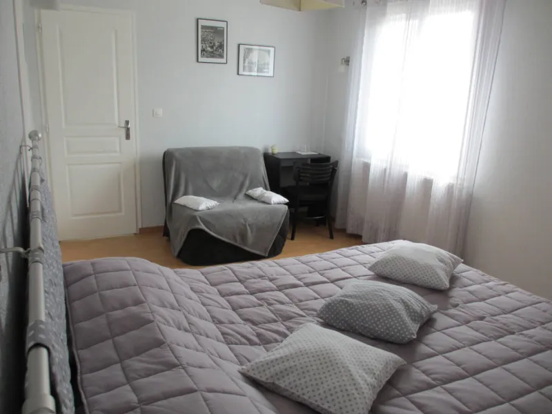 1 bedroom (1 x 160cm bed, 1 x 1-person BZ armchair), private shower room and toilet. 1 bedroom (2 single beds), private shower room and toilet. Dining room with BZ sofa for two people and kitchenette equipped with fridge, microwave, kettle, coffee maker, etc. available. We can accommodate a family or group of friends of up to 7 people. Depending on the season, breakfast is served by the fireplace in the communal dining room or on the south-facing veranda. Baby equipment available: cot, high chair. There's a closed garage for cyclists' bicycles and a large secure parking lot.Localisation