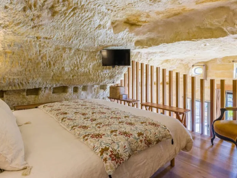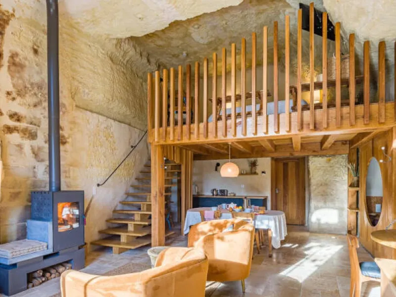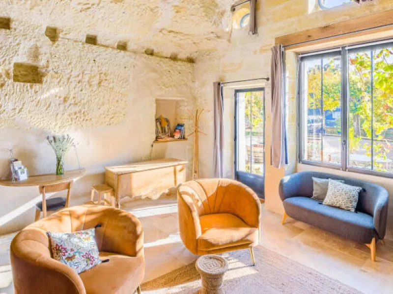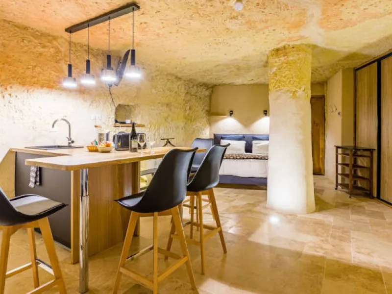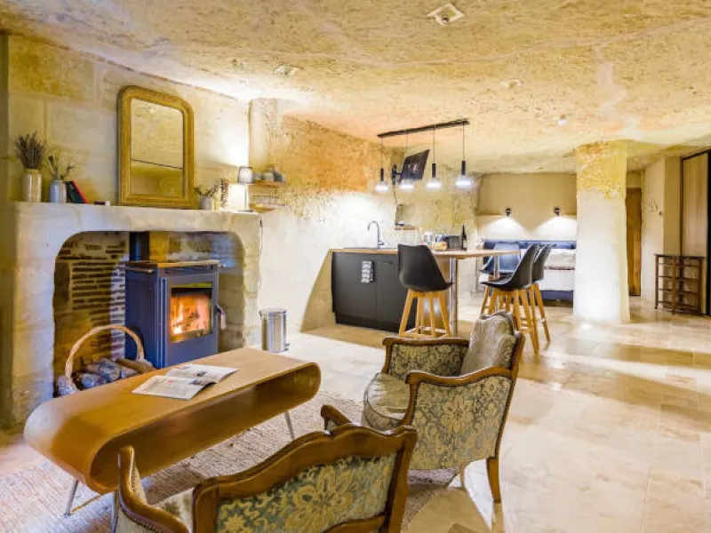 Not far from the heart of the village, at the foot of the vineyards, Le Clos Baudoin's troglodyte guest rooms offer every comfort. Large volumes, wood-burning stoves, private terraces, xxl shower, island bath... Treat yourself to an atypical experience! Free WiFi & parking on site. Sale of estate and local wines. Breakfast served in your room. Each accommodation is equipped with a space for light catering (table, fridge, kettle, toaster), without cooking equipment.Localisation