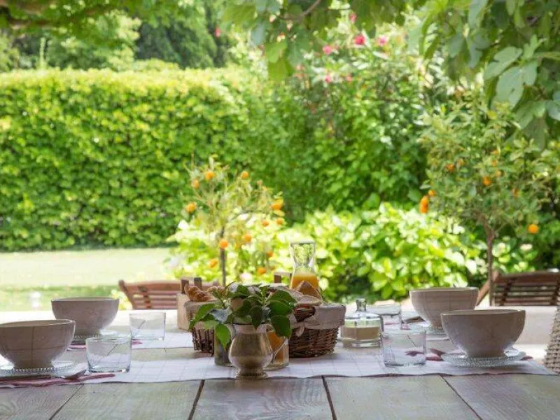 After a good sleep in the restful quiet of the home, enjoy superb breakfasts that can be served under the shade of the ancient fig tree, or in the bright and sunny dining room, depending on the season.