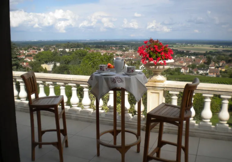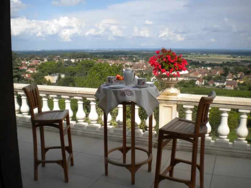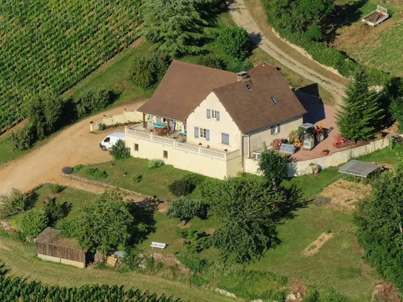 Surrounded by a "Montagny 1er Cru" vineyard, our winegrower's house overlooks the village of Buxy. From our large terrace, you can admire an exceptional panorama: the Saône plain, the Mâconnais mountains and, on a clear day, Mont Blanc and the Alps.Three carefully furnished and decorated bedrooms, each with en suite facilities.