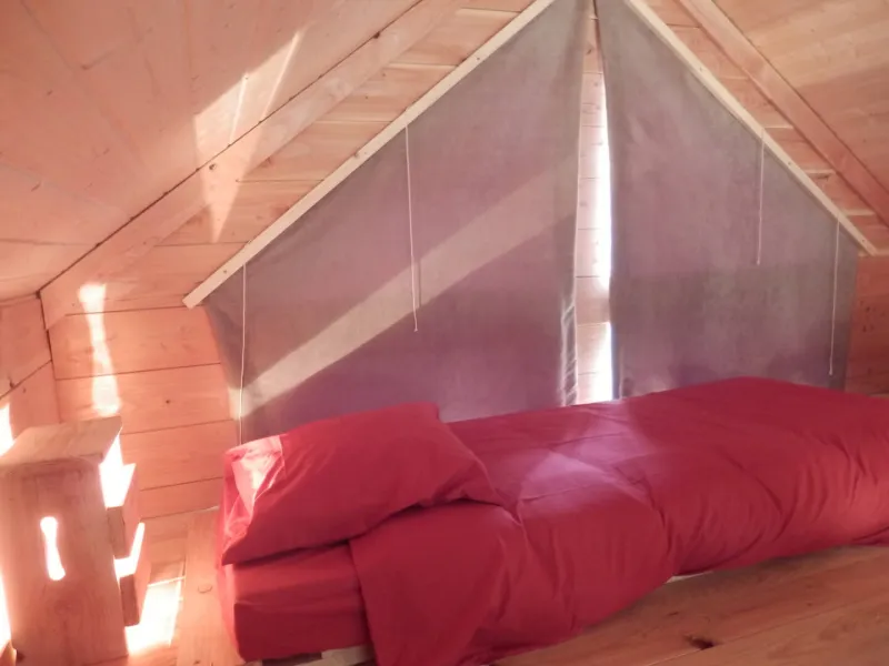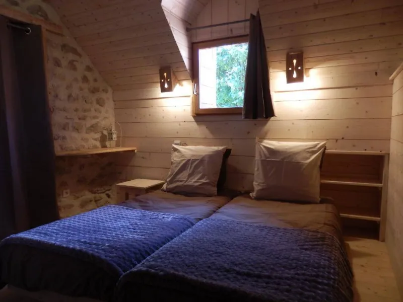 Discover the 'Nature' room, a charming 16 m² duplex with a wooden chalet feel. A little cocoon of serenity opening directly onto our peaceful garden to the west of the property. Nestled back, this single-storey room offers absolute peace and quiet, ideal for a relaxing getaway with a view of the mountains and donkeys.
