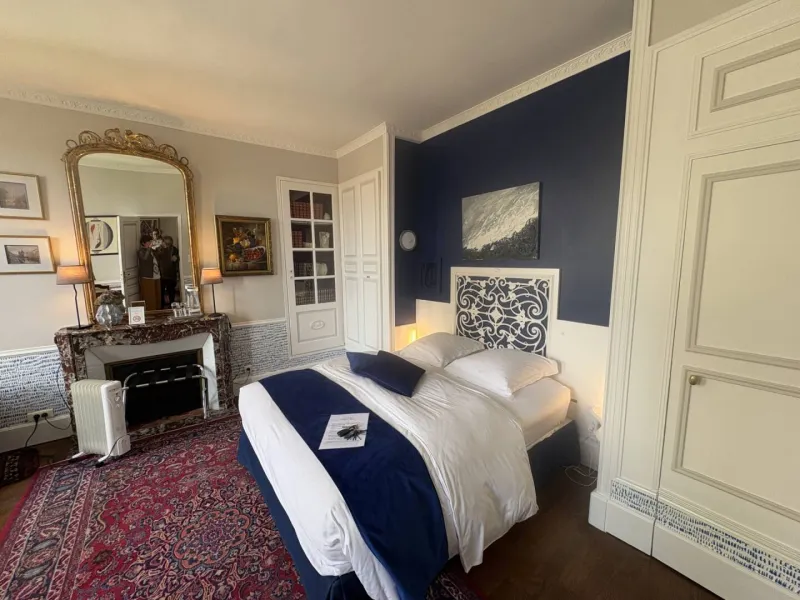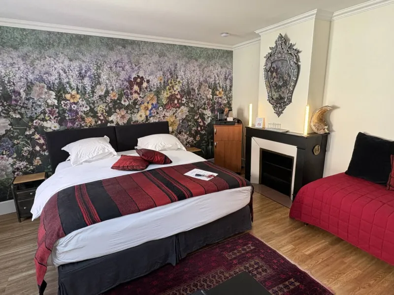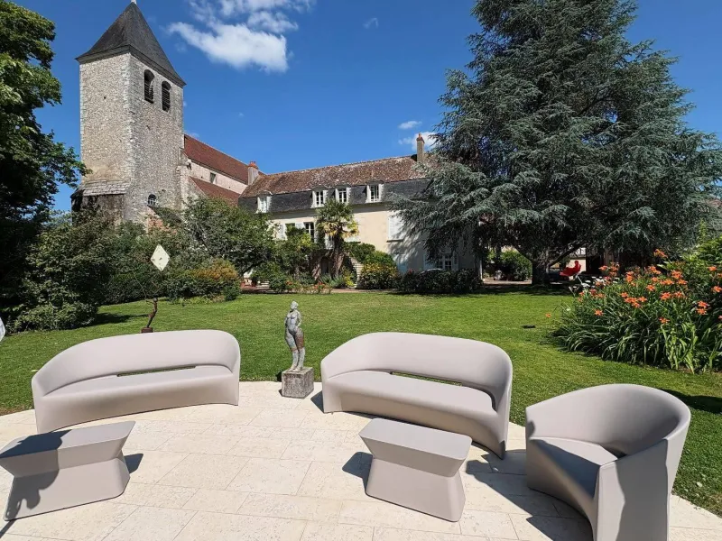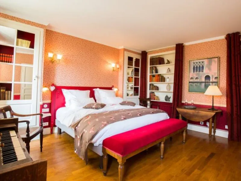 Curiously set against its Romanesque church, the Prieuré Saint-Agnan guest house is a magical place: an island of greenery and tranquillity in the heart of the busy little town of Cosne-Cours-sur-Loire. Since the priory was sold as national property in 1790, it has always been occupied by families, and to this day it remains a family home offering five guest rooms, arranged around a large lounge-library. The four bedrooms on the 1st floor are accessed via the grand outside staircase. Three of them have a view of the Loire and the fourth, which is more secret, overlooks an inner courtyard opposite the stained-glass windows of Saint-Agnan church. On the ground floor, the chambre du Clocher has its own access to the garden and its bathroom has been created in one of the old wine cellars.Localisation