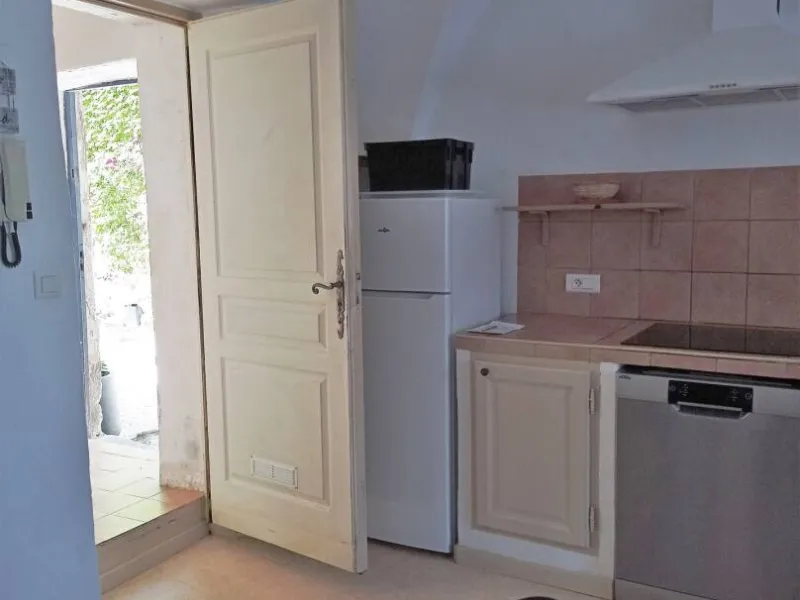 Cuisine équipée : plaque vitrocéramique – four micro-ondes – frigo avec congélateur – lave-vaisselle - cafetière Dolce Gusto – bouilloire – grille-pain