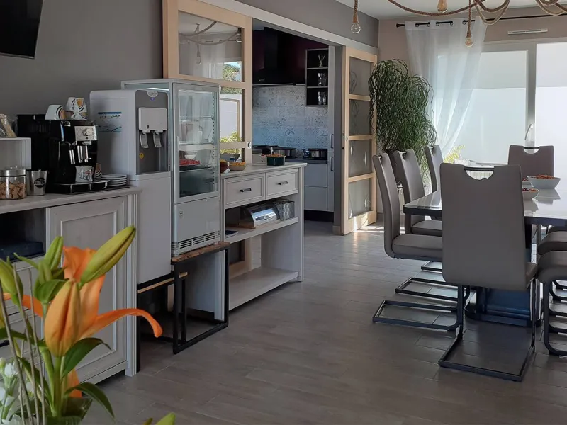 Breakfasts are served on request and, wherever possible, are organic (fruit, jam, Vendée brioche, sliced bread, cold meats, cheese, etc.). You can enjoy them indoors or on the terrace, depending on the weather. On your day out, your host can prepare a breakfast for you to take away.