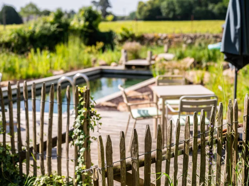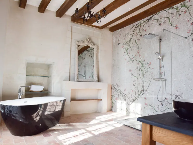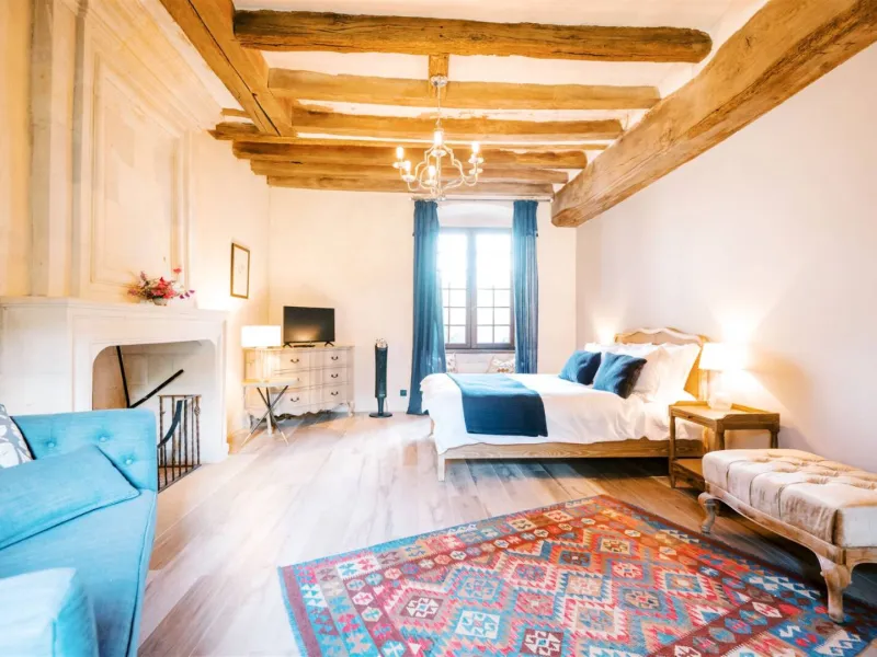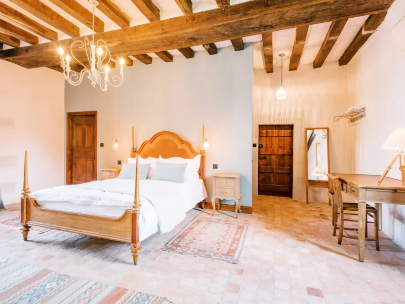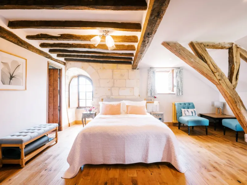 The Manoir de Jouralem and its chapel are set in 3 hectares of gardens and oak woodland between Angers and Saumur.Each of the four spacious bedrooms has a private bathroom, a king-size bed (UK) with Egyptian cotton sheets, a goose-down duvet and a Hypnos mattress. In summer, breakfast at the Manoir de Jouralem is served overlooking the pool and the nearby biodynamic vineyard.