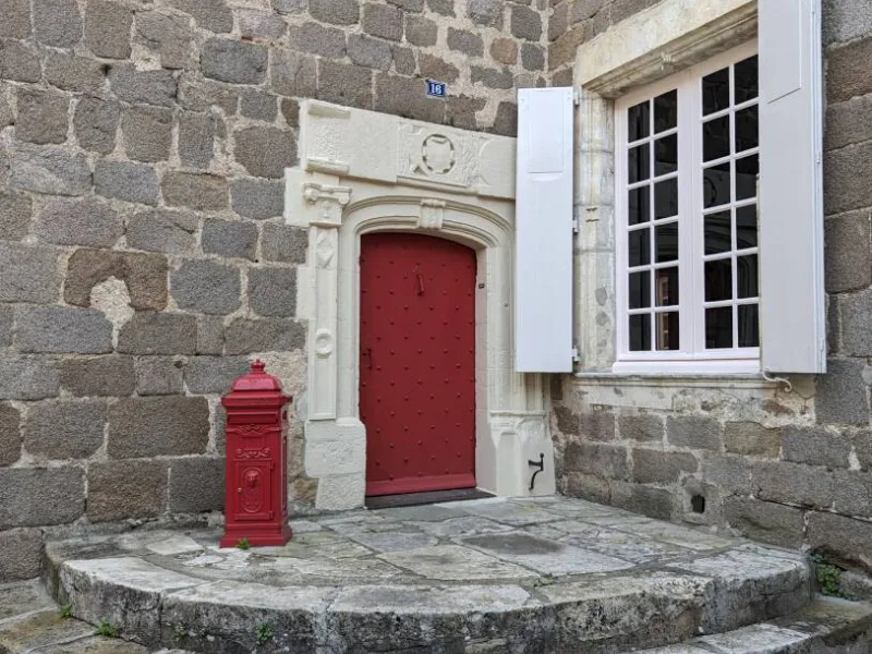 Inscrite aux Monuments historiques, cette grande bâtisse en pierres granitiques, a fait peau neuve. Le Manoir, blotti entre la rivière le Goire et les maisons à pans de bois de cette jolie cité, vous surprendra par son calme. Dans le jardin bucolique, les oiseaux s'en donnent à cœur joie.Deux chambres, deux ambiances : « la chambre d'écriture », d'inspiration 19ème siècle fera le bonheur des lecteurs et des romantiques qui seront éblouis par la majestueuse cheminée. Quant à la chambre « artistique », sa décoration plus contemporaine et plus colorée, vous fera plonger dans les années 60/70.