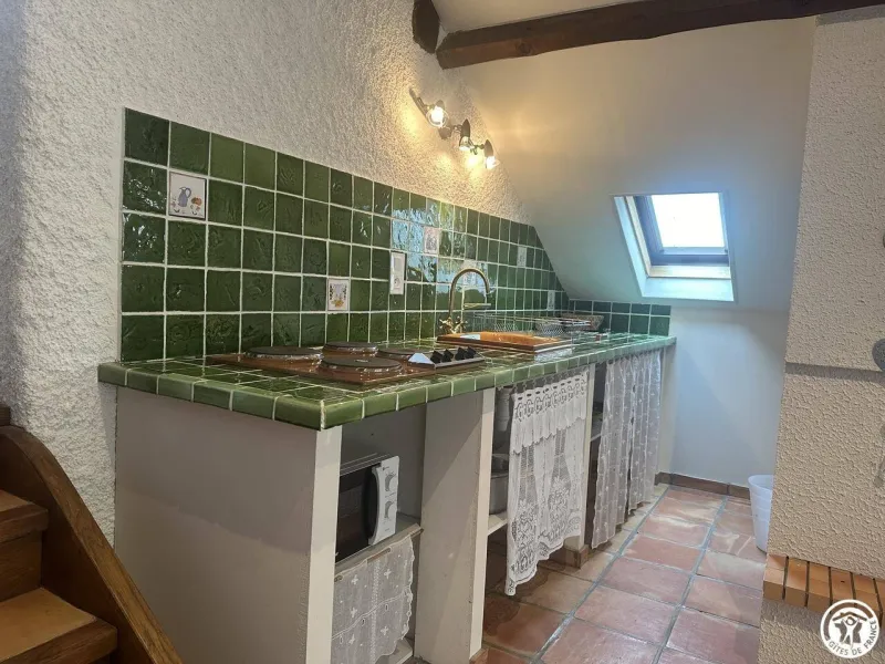 The Brillat-Savarin interview weekend will allow you to discover a large market for local products. For one night or a longer stay, Monique and Daniel are happy to open the room Under the Good Roof to you. A large bedroom under the eaves with a 160*200 bed, a living room with a 140*190 sofa. You have a living room with its ornamental fireplace and kitchen area to extend your getaway. For professionals or not, an office space.