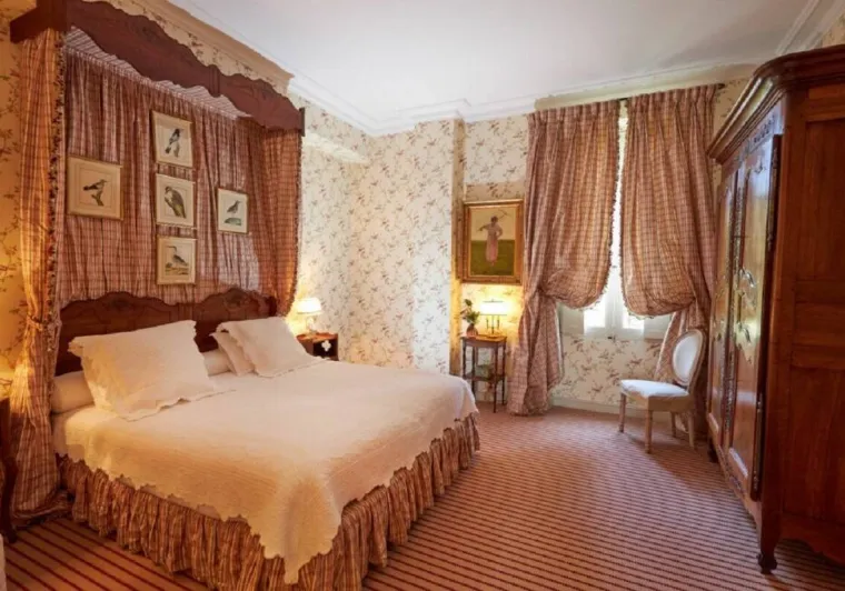 Chambre Safran, double room, king-size bed or two 90cm beds, street view and private toilet outside the room.