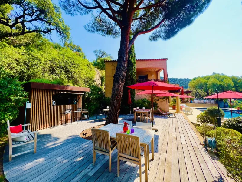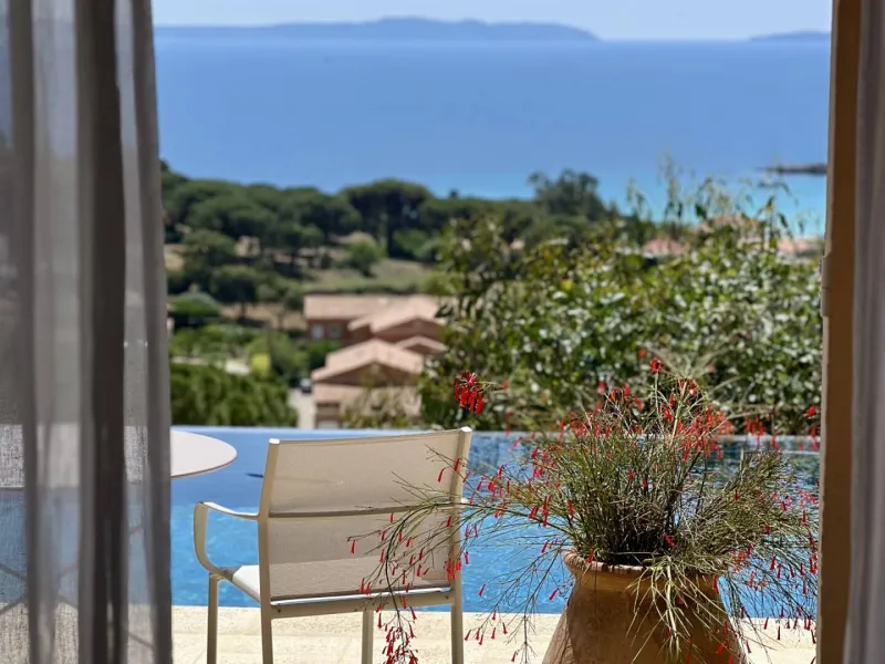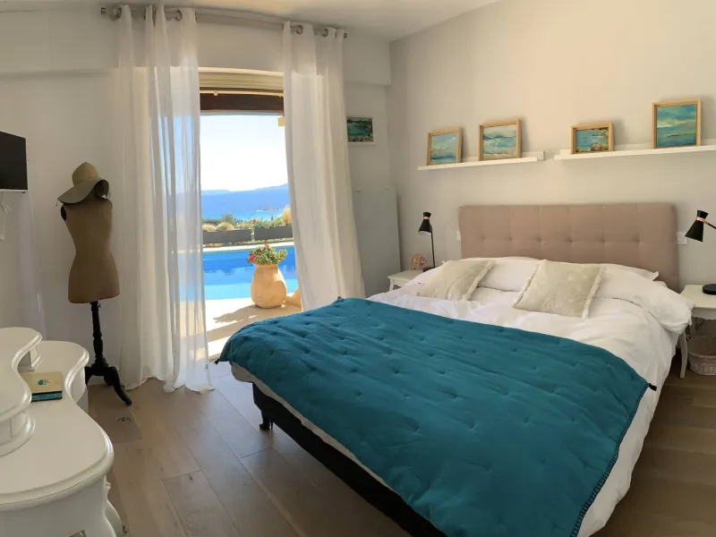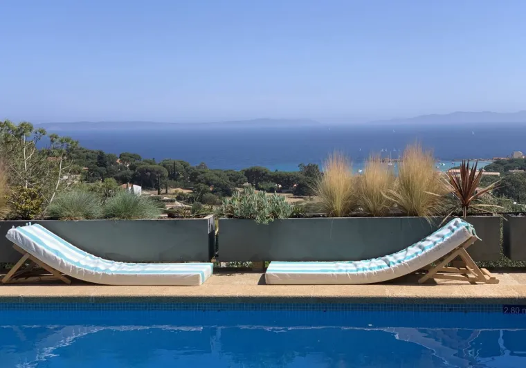 Venez passer un séjour unique dans notre propriété jouissant d’une vue panoramique exceptionnelle sur la mer et les îles d’Or.La VILLA THALASSA est nichée au creux de la colline du massif des Maures au calme et sans vis-à-vis dans une ambiance typiquement méditerranéenne. Au son des cigales en été, reposez vous sur nos terrasses entourées de pins parasols, oliviers, eucalyptus, chênes liège, et cyprès, au pied de la garrigue sauvage d’un site naturel classé Espace Remarquable.