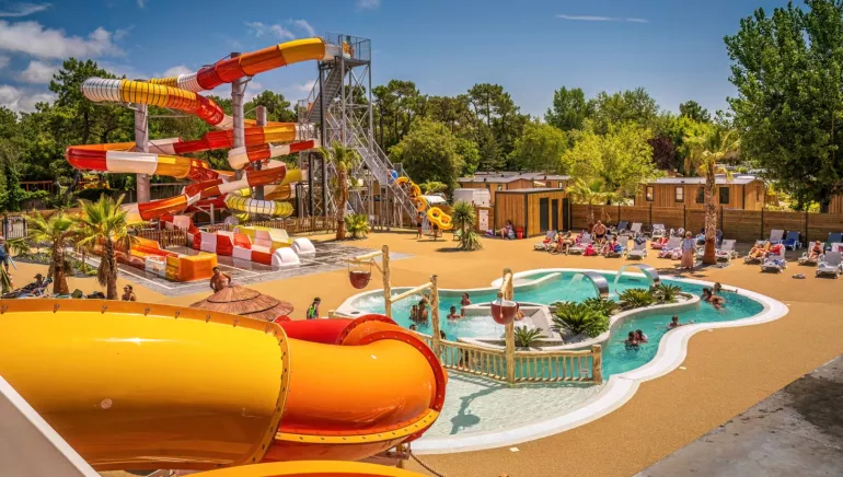 Imagine days filled with laughter and happiness in our 3 aquatic areas. Whether you're diving into the large outdoor pool, splashing in the heated paddling pool or relaxing in our indoor pool, every moment will be magical, whatever the weather. And with 7 waterslide lanes, including one with a buoy, water adventure is guaranteed for young and old!