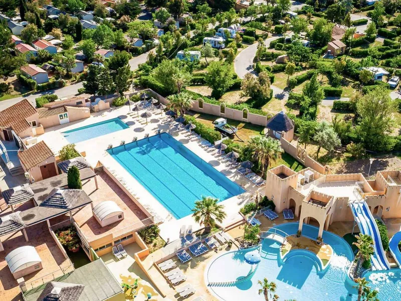 At the heart of the Narbonne Regional Natural Park, between the Gruissan beaches and the Bages lake, discover the charm of a Mediterranean holiday. The Camping les Mimosas offers you large, user-friendly, well-defined and semi-shaded pitches, as well as a wide range of fully equipped chalets and cottages for 4-6 people.In a family-orientated atmosphere that is both calm and sporty, you will experience an unforgettable holiday: a 2000 m² aquatic park with four water slides, hot tub, 3 swimming pools including one heated, tennis courts, sauna, mini-golf, fitness room, children's playground and multi-sports field.