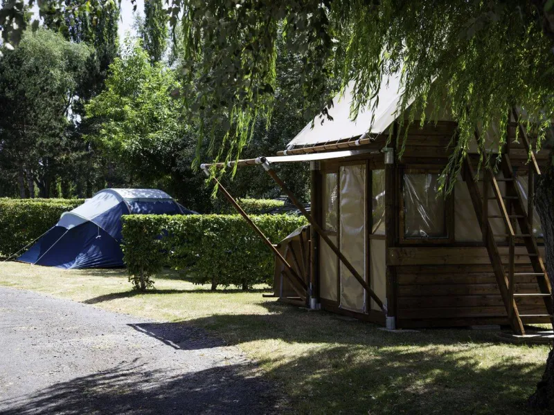 Lodges for 5 persons with a living room opening onto a covered terrace (2 bedrooms, kitchenette, 20L water supply and electricity).