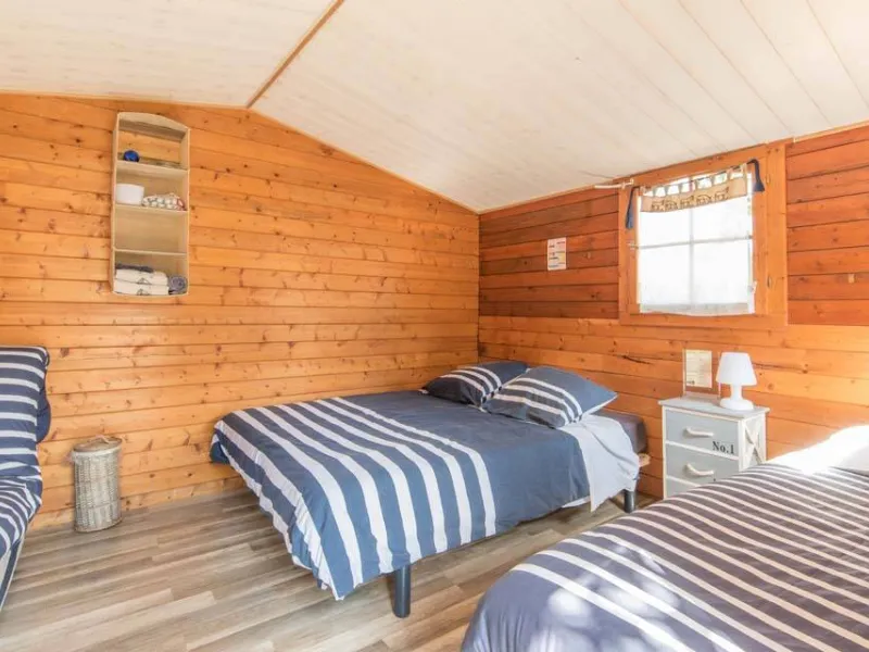 This is a single-storey "wood and canvas" communal chalet with 3 cabins: