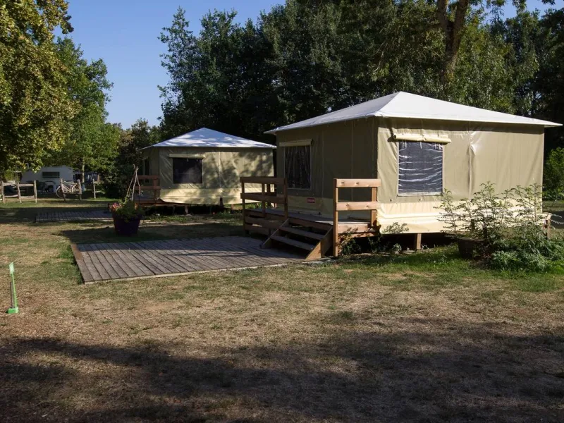 From the Ile Auger campsite, located on the banks of the Vienne river opposite a restored medieval fortress, you only have to cross a bridge to find yourself in the heart of Chinon, a small town listed as an Art and History town with charming terraces. Several cellars allow you to taste the unmissable Chinon wine.In addition to the 187 pitches, particularly popular with cyclists from La Loire à Vélo, there are also about fifteen canvas bungalows (for 2, 4 or 5 people) for rent.