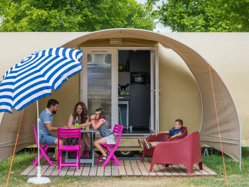 Ideally located in the heart of the town, on the banks of the Loir, the Route d'Or campsite is the ideal place to enjoy your stay, whether for a day, a weekend or a week... Whether you're a couple, a family or a group of friends, in a camper van, a caravan or by bike, you'll find everything you need here: large, shady pitches, modern mobile homes for up to 6 people or even unusual accommodation ("coco sweet" tents, "campétoiles" cabins on stilts, transparent bubbles). On site, take advantage of the facilities on offer: heated swimming pool, tennis, table tennis, home ball, sauna, playground, pétanque, volleyball, etc. In addition, you'll discover the charm of our region, with its combination of built heritage and outdoor activities: Prytanée National Militaire, windmills, bike rides, La Flèche Zoo, leisure centres, canoeing...Localisation